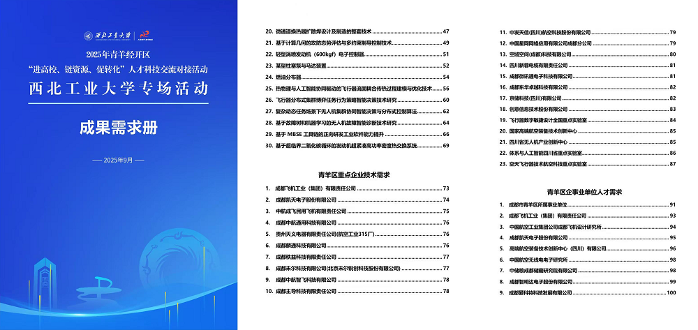 围绕企业切实需求,西北工业大学积极响应,依托其在航空航天、先进制造等领域的深厚积淀,从民航学院、软件学院、机电学院、材料学院、航空学院、动力与能源学院、力学与交通运载学院、自动化学院、电子信息学院、光电与智能研究院等多个院系中,匹配近30个研究方向高度契合的团队,形成了“结对子”清单。