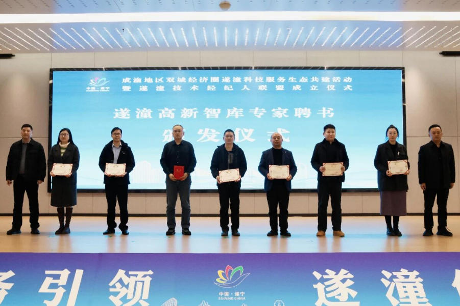 活动现场先后举行了遂潼科技创新服务中心揭牌、遂潼技术经纪人联盟授牌等仪式,在遂潼高新智库专家聘书颁发仪式上,我司董事长张书译先生获聘并接受聘书。据悉,该智库由遂宁高新区管委会、潼南高新区管委会联合支持,秉承“创新、务实、开放、共享”理念,聚焦两地产业转型升级与创新发展需求提供智力支持和决策参考。