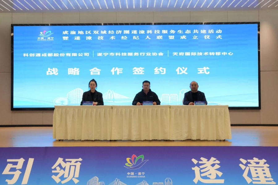 在活动签约环节,科创通成都股份有限公司与遂宁市科技服务行业协会正式签订战略合作协议。双方将围绕遂潼地区科技创新需求,整合资源优势,在科技成果转化、技术转移服务、企业数字化赋能等领域开展深度合作,助力遂潼川渝毗邻地区一体化发展先行区构建高效协同的科技服务生态体系。